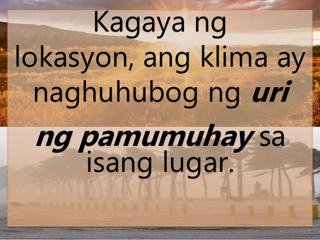 Impluwensya Ng Klima At Lokasyon Sa Pamumuhay