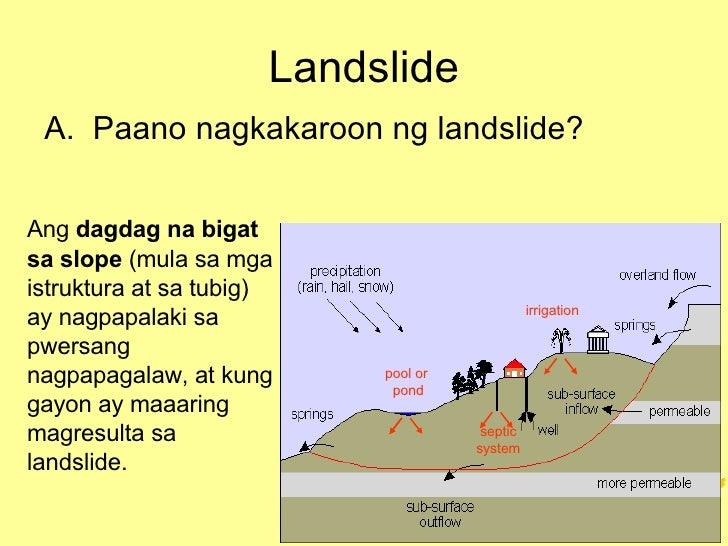 May kasabihan na Ang malinis na kapaligiran kaaya-ayang pagmasdan Sino ba ang higit na maaapektuhan kung magkaroon ng baha. Paano magiging ligtas at maiiwasan ang epekto ng mga kalamidad sa inyong pamayanan dulot ng sumusunod landslide-. Noong sya ayhutang pa lamang na ang galing sa.